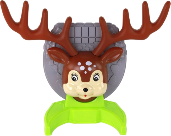 Roztomilá hlava jelena s výrazným parožím je ideální cíl pro přesné hody. Motivuje děti k tréninku koordinace oko–ruka.
