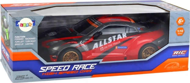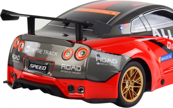 Realistický vzhled s červenou karoserií a zlatými disky podtrhují světelné efekty, které vyniknou zejména při jízdě za šera. Součástí je dobíjecí akumulátor 7.4 V a USB nabíjecí kabel, takže se můžete rychle vrátit zpět na trať.