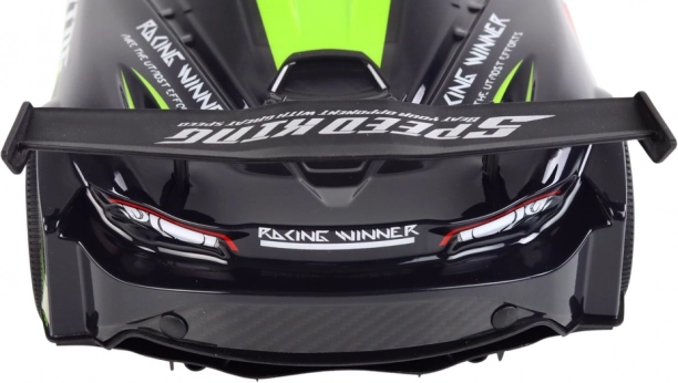 - Odolný design: sportovní šasi s detaily ve zelené a černé, zlatá kola a zadní křídlo pro lepší stabilitu.
