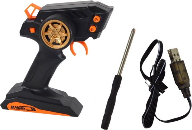 Model je dodáván s 7,4V akumulátorem a USB nabíječkou pro pohodlné dobití. Ovladač pracuje na 2× AA 1,5 V (nejsou součástí). Díky rozměrům přibližně 42,5 × 22 × 10 cm přináší působivý poměr velikosti a výkonu pro skutečně zábavnou jízdu.