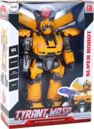 Robot má kloubové končetiny, detailní „obrněný“ vzhled a žluto‑černé barevné provedení, které zaujme na první pohled.
