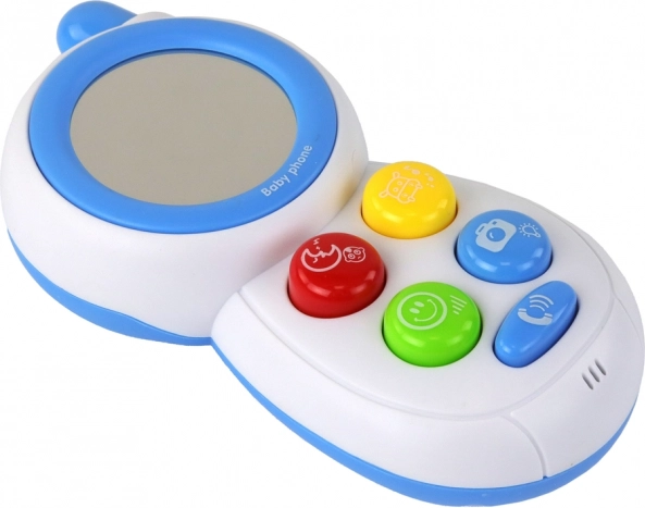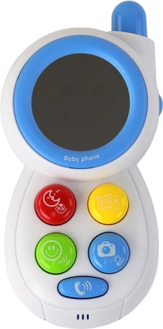 Roztomilý interaktivní telefon pro děti v modré barvě nabízí světelné efekty, zvuky skutečného telefonu a bezpečné zrcátko na displeji. Pět barevných tlačítek přináší různé melodie a zvuky, které podporují senzorický rozvoj a jemnou motoriku. Vyrobeno z kvalitního plastu, s důrazem na bezpečnost a dlouhou životnost.