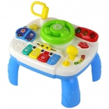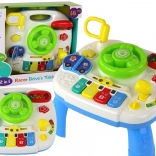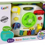 Tento barevný interaktivní stolek slouží jako 2v1 hračka – buď jako samostatný stolek na nožkách, nebo jako závěsná panelová tabule na postýlku díky praktickým úchytům. Centrem zábavy je dětský volant s blinkry, klaksonem a světelnou signalizací, který pomáhá učit základy dopravní výchovy i koordinaci rukou a očí.