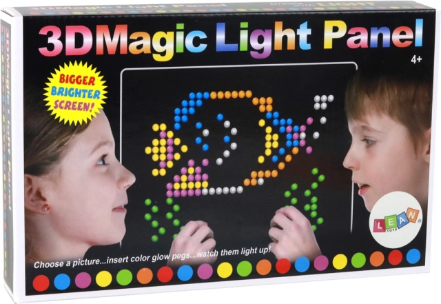 S touto magickou tabulí budete mít zábavu zaručenou. Vkládejte kolíčky do tabule a vytvářejte vlastní 3D konstrukce. Magický moment přichází po zapnutí spínače na zadní straně tabule, kdy vaše dílo začne svítit. Tvůrčí zábava pro každého!