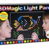 S touto magickou tabulí budete mít zábavu zaručenou. Vkládejte kolíčky do tabule a vytvářejte vlastní 3D konstrukce. Magický moment přichází po zapnutí spínače na zadní straně tabule, kdy vaše dílo začne svítit. Tvůrčí zábava pro každého!