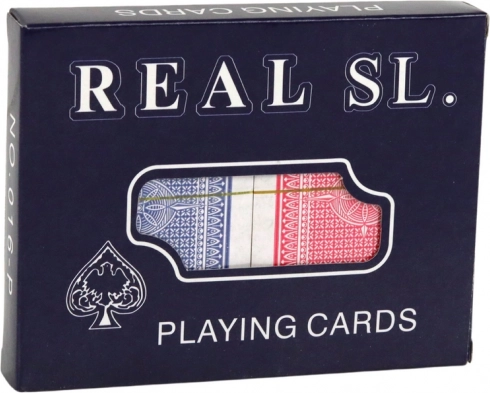 REAL SL karty na hraní nabízejí výjimečný herní zážitek se dvěma balíčky v klasickém formátu. Karty jsou vyrobeny z kvalitního kartonu s uhlíkovou vložkou a lakované pro zajištění skvělého skluzu a snížené absorbce vlhkosti.