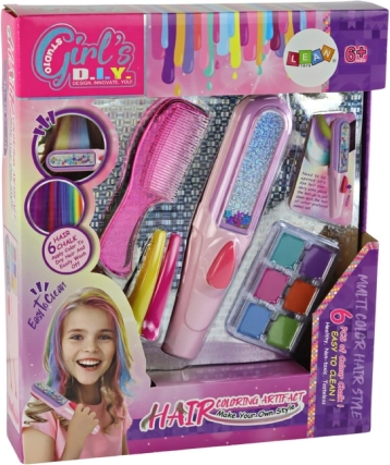 Tato zábavná sada na barvení vlasů je navržena tak, aby inspirovala děti ke kreativnímu vyjádření prostřednictvím barevného stylizování vlasů. Bezpečné a snadno použitelné pomůcky zaručují, že experimentování s vlasy bude nejen zábavné, ale i zcela bezpečné.