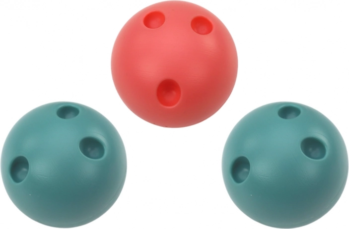Díky číslům na kuželkách můžete vymýšlet vlastní hry – od sčítání a odčítání po soutěže o nejvyšší skóre. Tři míčky s otvory pro prsty se dětem dobře drží a umožňují pohodlné a bezpečné házení.