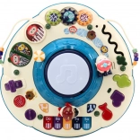 Interaktivní edukační stolek pro děti nabízí hudební piano, svítící bubínek, ozubená kolečka, posuvné prvky a další aktivity pro rozvoj jemné motoriky, sluchu a zrakové percepce. Stabilní provedení se třemi nohami lze použít i bez nožiček přímo na podlaze. Ideální pro první objevování světa zvuků, barev a tvarů.