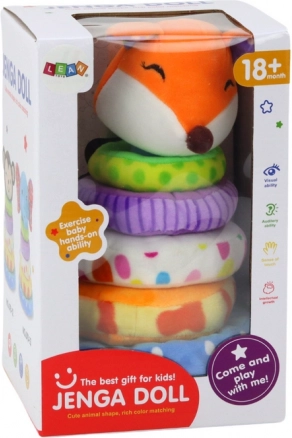 Roztomilá plyšová vzdělávací pyramida s liškou potěší batolata veselými barvami a měkkým materiálem. Děti skládají barevné kroužky od největšího po nejmenší, trénují jemnou motoriku, logické myšlení a učení barev a velikostí. Bezpečná hračka s certifikací CE a normou EN71, vhodná od 18 měsíců.