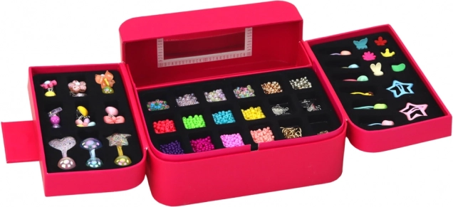 Více přihrádek pro snadné třídění korálků, náušnic a doplňků. Zrcátko usnadní zkoušení hotových výtvorů a udrží vše na svém místě.