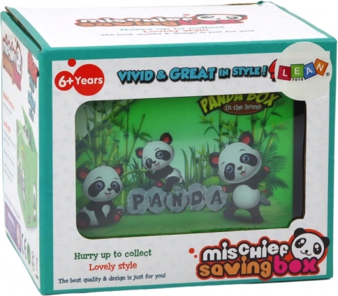 Tato čtvercová pokladnička v zelené barvě s roztomilým motivem pandy promění spoření v hru. Dítě položí minci na horní bílé tlačítko, stiskne ho a z víka se vysune malá panda, která minci vtáhne dovnitř. Efekt překvapení spolu se zvukem udrží pozornost a podporuje pravidelné odkládání mincí.