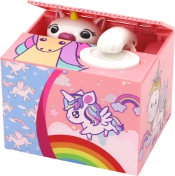 Tato interaktivní sporicí krabička v růžové barvě s motivem jednorožce promění spoření v zábavu. Po položení mince na horní tlačítko se ozve radostná melodie a z víčka se vyklube roztomilý jednorožec, který minci „schová“ dovnitř. Děti si tak přirozeně osvojují návyky hospodaření s penězi.