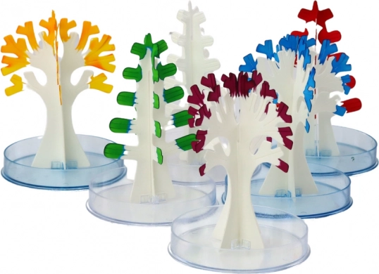 Tato vzdělávací sada přináší dětem zábavný vstup do světa chemie. Díky přiloženým nástrojům mohou pozorovat, jak se z roztoku postupně tvoří krásné krystaly připomínající pestrobarevné stromečky. Jde o skvělý způsob, jak propojit učení a hru.