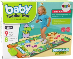 Rozhýbejte děti zábavnou a bezpečnou hudební hrou! Interaktivní taneční a vzdělávací podložka s dinosaury nabízí světelné efekty a zvuky, 8 herních režimů a 9 dotykových tlačítek, které reagují na pohyb. Podporuje motoriku, koordinaci, smyslové vnímání a rozvíjí rytmus a muzikálnost. Rozměr 80×50 cm, napájení 3× AA (nejsou součástí), od 18 měsíců.