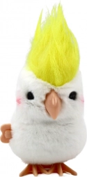 Kombinace hebkého bílého plyše a ikonického žlutého chocholu kakadu zaujme na první pohled a láká k pohlazení.