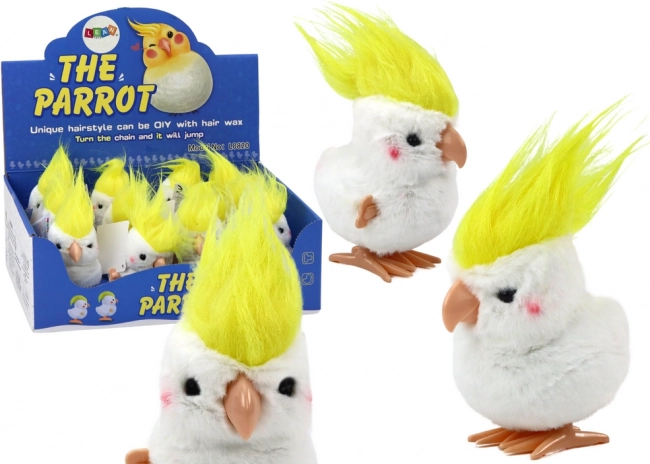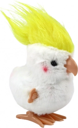 Tato natahovací plyšová papoušek ve stylu kakadu zaujme jemným bílým kožíškem a výrazným žlutým chocholem. Skvěle se hodí jako drobný dárek, dekorace na poličku i každodenní společník při hře. Po natažení mechanismu papoušek radostně skáče a rozproudí zábavu během pár vteřin.