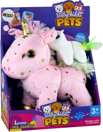 - Velký jednorožec s mechanickým hudebním strojkem, malý plyšový jednorožec