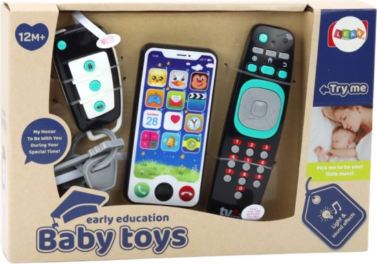 Tato realistická sada pro batolata spojuje interaktivní telefon, TV ovladač a autoklíče, aby děti mohly napodobovat dospělé a učit se hrou. Světelné a zvukové efekty podněcují smysly, zatímco pohodlné tvary skvěle padnou do drobných ruček.
