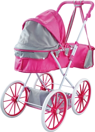 Růžový kočárek pro panenky podporuje nápaditou hru, empatii a rozvoj sociálních dovedností. Díky odolné kovové konstrukci je stabilní a připravený na dlouhé hodiny zábavy. Velká pěnová kola usnadňují jízdu po chodníku i doma, takže malí pečovatelé mohou vzít svou oblíbenou panenku kamkoli.