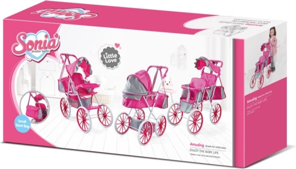 Kočárek je vybaven skládací stříškou pro ochranu panenky před sluncem, taškou na příslušenství pro všechny drobnosti a spodním košíkem pro další hračky. Je lehký, snadno ovladatelný a bezpečný, což z něj dělá skvělý dárek pro děti od 3 let.