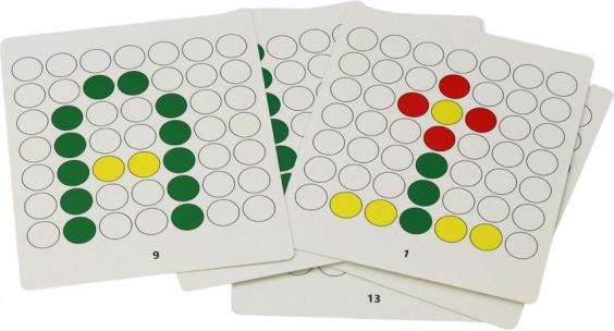 Sada obsahuje také 7 karet s různými vzory, které jsou ideální pro napodobování a cvičení jemné motoriky. Nicméně, naše tabule povzbuzuje k kreativnímu myšlení a experimentování, což umožňuje dětem vytvářet vlastní, jedinečné kompozice a objevovat své umělecké talenty.