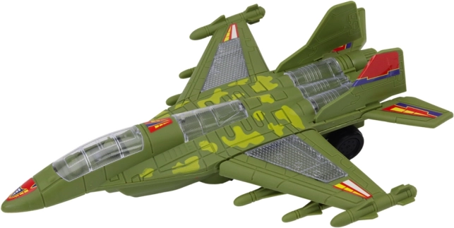 Zelené maskování, aerodynamické linie a průhledný kokpit dodávají modelu autentický vzhled skutečné stíhačky. Skvělý doplněk do dětské flotily.