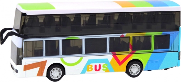 Zábavná a odolná hračka pro malé fanoušky městské dopravy: dvoupodlažní kovový autobus se setrvačníkovým (frikčním) pohonem, světelnými a zvukovými efekty a otevíracími dveřmi i zavazadlovým prostorem. Kovová konstrukce zajišťuje dlouhou životnost a realistické detaily podporují kreativní hru.