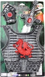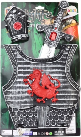 Tento dětský rytířský kostým je navržen pro nápaditou hru na hrdiny i karnevalové převleky. Zbroj s červeným drakem, stylový meč a nátepník tvoří vyváženou trojici doplňků, které dodají každému malému bojovníkovi sebevědomí a autenticitu. Odolné plastové provedení a propracované detaily podporují dlouhé hodiny bezpečné hry.