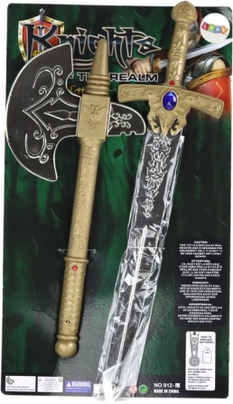 Dětská rytířská sada obsahuje meč a sekeru s detailním dekorativním provedením v odstínech zlata, stříbra a bronzu. Díky zvukovým efektům se děti snadno vžijí do role statečných hrdinů, kteří brání hrad či podnikají výpravy za dobrodružstvím. Hračky podporují kreativitu, pohyb a rozvoj fantazie.