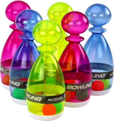 Zábavná rodinná hra pro doma i ven! Tato sada obsahuje 6 průhledných barevných kuželek (2 fialové, 2 modré, 2 žluté) a ergonomickou kouli pro přesné shazování. Odolný materiál s průhledným designem umožňuje vidět kuličky uvnitř pro ještě větší efekt. Certifikace CE, splňuje normu EN71, vhodné pro děti od 3 let.