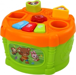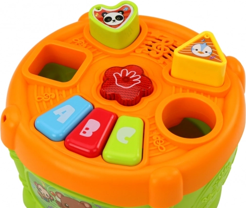 Barevná interaktivní edukační hračka ve tvaru bubnu nabízí zábavu i učení. Vylepšení zrakových a motorických schopností dětem pomáhá učit se rozpoznávat tvary a písmena skrz interaktivní prvky.
