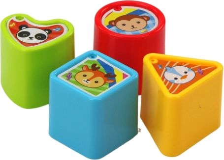 Hračka podporuje rozvoj tvarového rozpoznávání díky integrovaným otvorům a tvarům na vkládání.