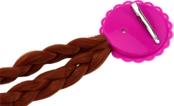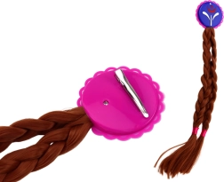 Růžová spinka s hnědým zapleteným copem se snadno připne do vlasů a okamžitě vytvoří efektní, pohádkový účes.