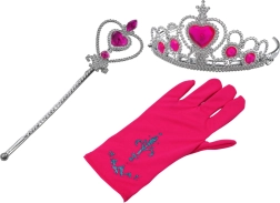 Stříbrná korunka s růžovými kamínky a ladící hůlka se srdíčky dodají každé princezně třpyt a kouzlo – perfektní pro převleky a focení.