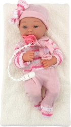Roztomilá panenka miminko v růžovém oblečku potěší každou malou pečovatelku. Nabízí pohyblivé ruce a nohy, realistické detaily obličeje a praktické příslušenství včetně dudlíku na šňůrce a měkoučké dečky. Vyrobeno z bezpečných materiálů, vhodné od 18 měsíců.