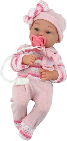 Tato růžová panenka miminko se stylovým svetříkem v pruzích, čepičkou a šálou je ideálním společníkem pro každodenní hraní. Díky pohyblivým končetinám lze panenku snadno posazovat a pokládat, což podporuje kreativní scénáře a realistickou péči.