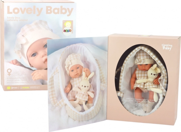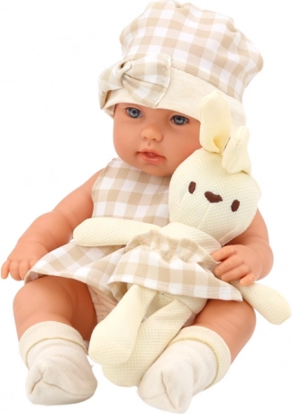 Tato realistická panenka s měkkým tělíčkem je ideální pro nácvik péče a rozvoj empatie. Děti si zamilují jemný outfit v béžovo-bílé kostce se čepičkou a ponožkami i roztomilého plyšového králíčka, kterého může miminko objímat. Díky pohyblivým končetinám lze snadno vytvářet nejrůznější herní scénky.