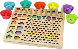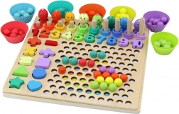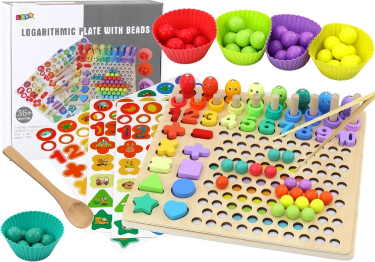 Univerzální herní deska slouží jako jednoduché „počítadlo“ – navlékáním správného počtu prvků si děti upevňují představu množství a pořadí čísel. Kvalitní dřevěné zpracování a syté barvy lákají ke zkoumání a dlouhé hře.