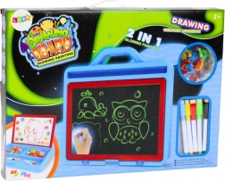 Tato velká kreslicí tabule je ideální pro malé umělce i předškoláky. Nabízí kreslení pomocí magických mazacích fixů a speciálního LED světelného pera, které rozzáří obrázky ve ztemnělé místnosti. Děti si mohou zkoušet první písmena, čísla i jednoduché výpočty, a to zábavnou formou.