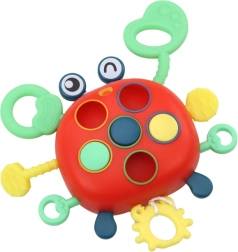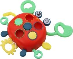 Krab Sensoryčná je ideální hračkou pro stimulaci smyslů nejmenších dětí. Zaměřuje se na rozvoj jejich hmatu, zraku a sluchu prostřednictvím barevných a texturovaných prvků.
