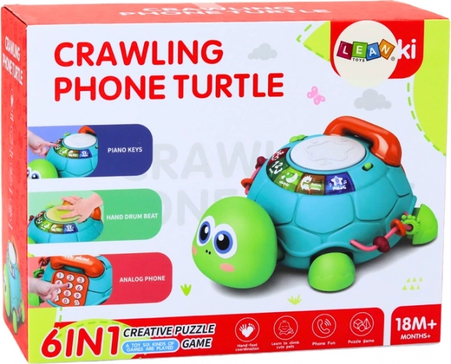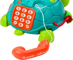 Tato hračka má multifunkční telefon a klávesnici, které umožňují dětem simulovat telefonní hovory a zvyšují realistický zážitek díky zvukům vytáčení a zvonění. Pět tlačítek na krunýři želvy přináší možnost slyšet názvy čísel, písmen, zvuky nástrojů a zvířat, stejně jako veselé melodie.