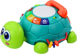 Interaktivní bubínek na zádech želvy s efekty světel přispívá k senzorickým zážitkům a poskytuje další dávku zábavy a kreativity. Tlačítko ve tvaru želvy vedle bubínku spouští pohyb želvy, čímž podporuje zapojení dětské představivosti a motoriky.
