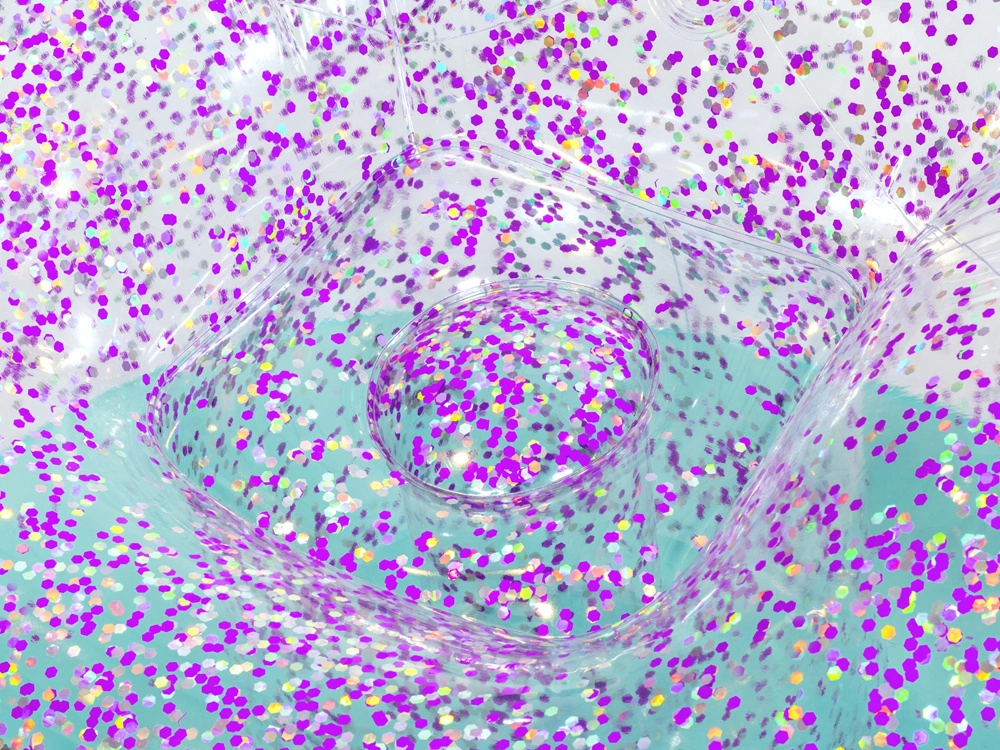 Průhledné provedení s fialovým a duhovým brokátem vytváří okouzlující efekt a dodá prostoru moderní styl.