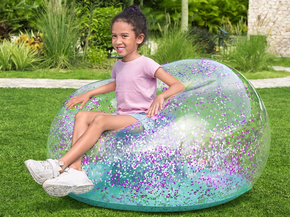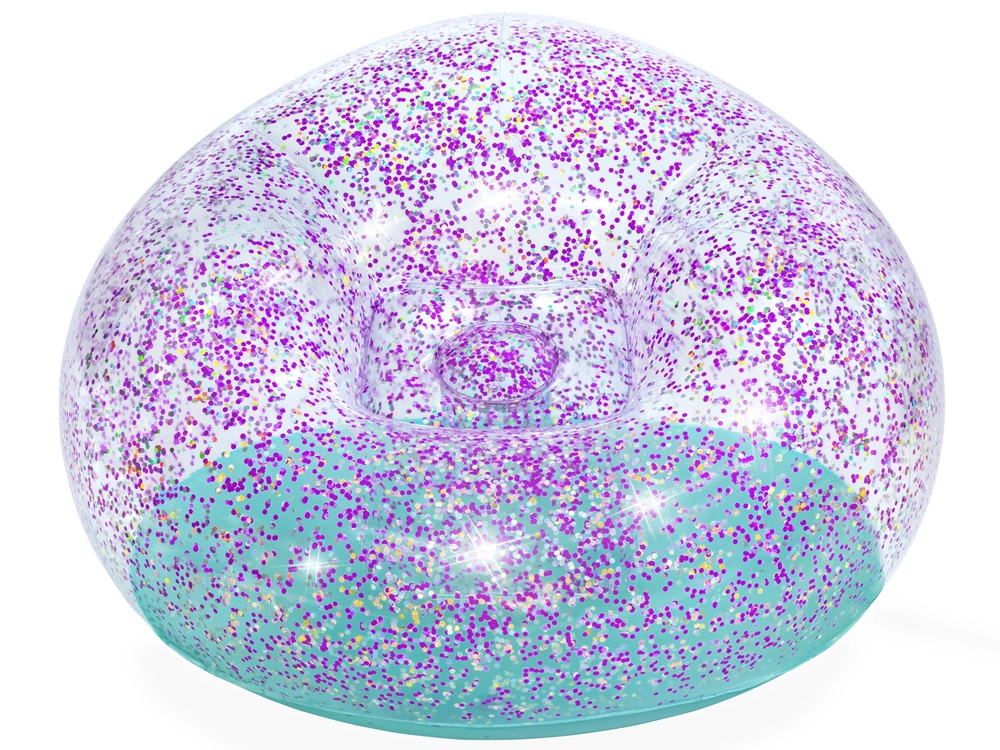 Nafukovací pufa BESTWAY Glitter Dream kombinuje hravý design s praktickým pohodlím. Průhledná konstrukce s třpytivým konfety efektem dodá interiéru i exteriéru zábavný a trendy nádech. Díky nízké hmotnosti ji snadno přenesete na zahradu, terasu i do dětského pokoje.
