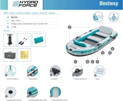 Objevte stabilní a prostorný člun HYDRO-FORCE Adventure Elite X5, který kombinuje vysokou nosnost, pohodlí a snadnou manipulaci. Vícevzduchové komory, pevné úchyty a obvodové lano zvyšují bezpečnost na vodě, zatímco lehká konstrukce umožňuje rychlé nafouknutí a složení do přepravní tašky.