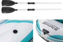 Součástí sady je vše, co potřebujete: pár hliníkových pádel, ruční pumpa, taška na vybavení, přepravní vak a opravná záplata. Stačí nafouknout a vyrazit za dobrodružstvím.