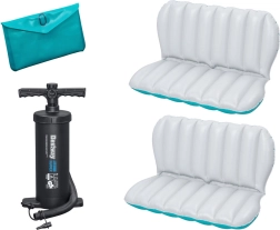 Dva nafukovací sedáky s opěrkami a nafukovací podlaha poskytují komfort při pádlování, odpočinku i rybaření na klidných vodách.