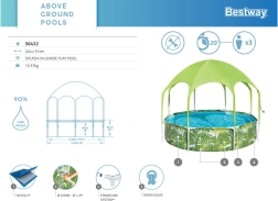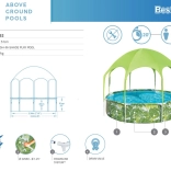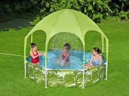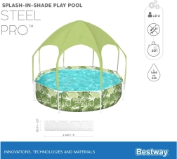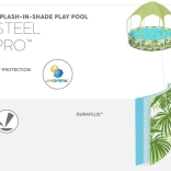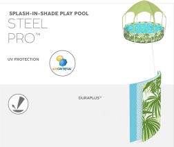 Bazén Bestway SPLASH-IN-SHADE je navržen tak, aby děti motivoval k pohybu a bezpečné vodní zábavě na zahradě. Přístřešek s integrovaným natryskem poskytuje stín a ochlazení; stačí připojit zahradní hadici a zábava může začít. Barevná letní grafika potěší malé plavce a pevná konstrukce zajistí stabilitu po celé léto.