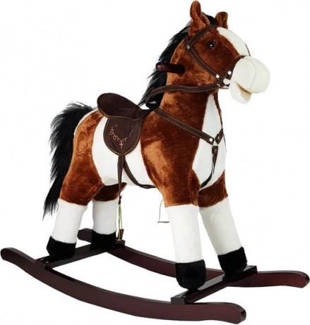 Naše houpací kůň tmavě hnědý je vyroben z měkkého plyšového materiálu, který zajišťuje pohodlí během dlouhého hraní. Kůň je vybaven realistickými zvuky, které se aktivují stisknutím jeho ucha, přičemž oživují atmosféru Divokého západu zvuky řehtání a cválání.